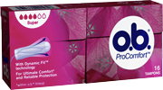 o.b.® økologiske tamponger er plastfrie fra tupp til tråd og er laget av 100 % sertifisert* økologisk bomull, og har dessuten unike buede riller for en naturlig og sikker beskyttelse. Disse er designet for å føre væsken inn i tampongens indre og gir en ren og beskyttet følelse